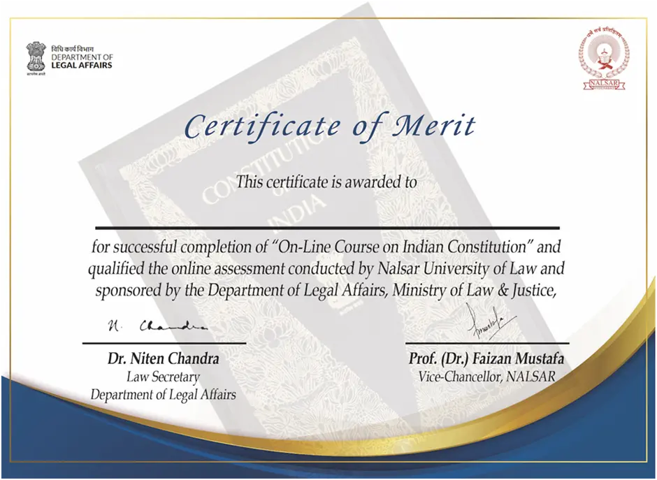 NALSAR University Distance Education Sample Certificate